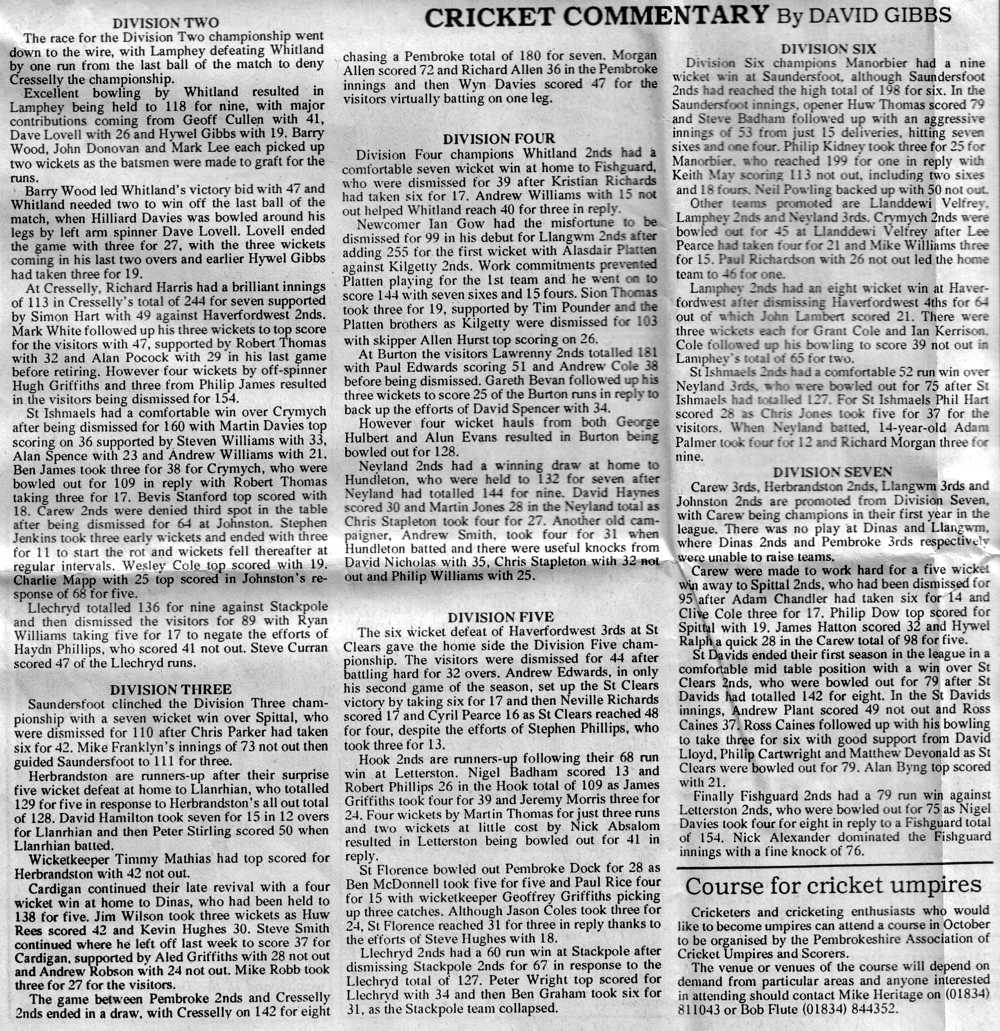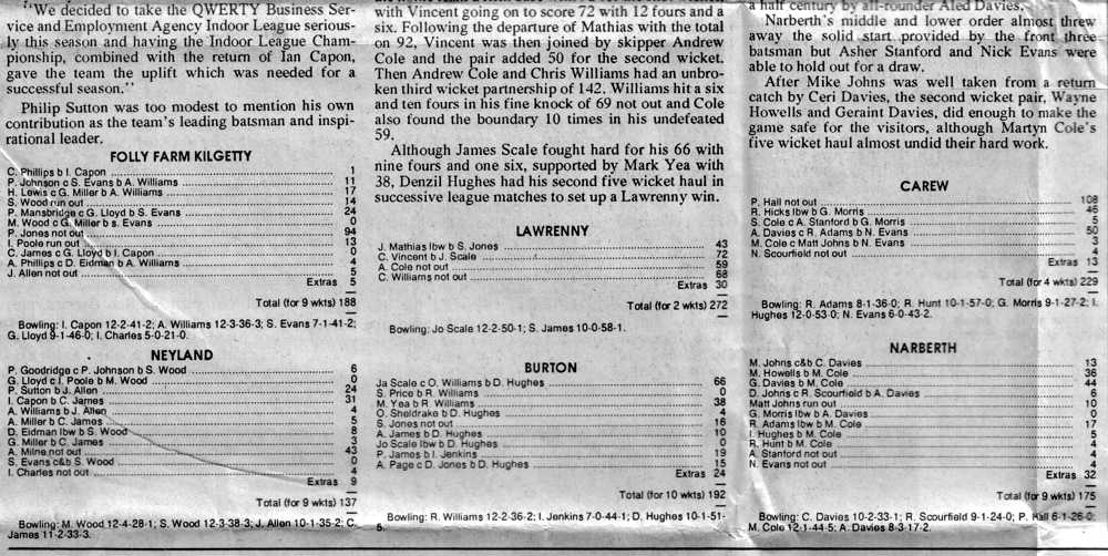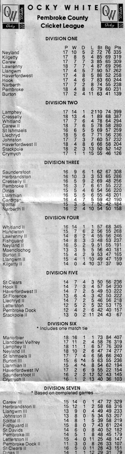 End of season league tables: