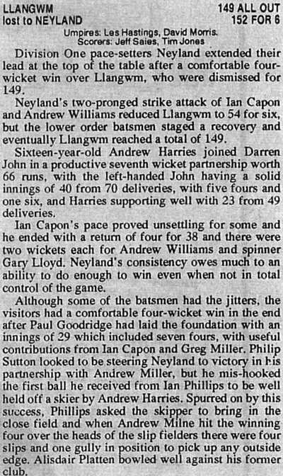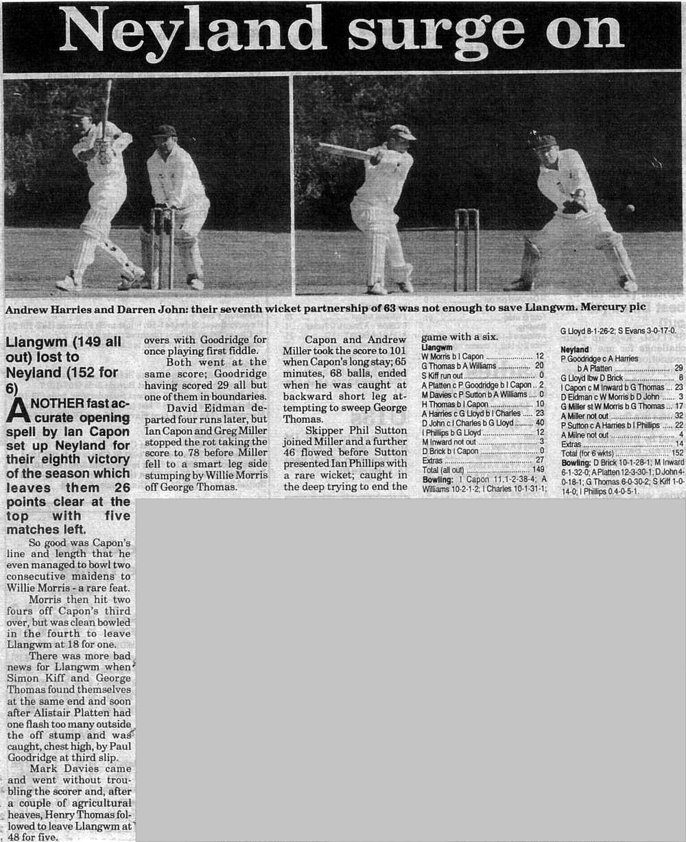 League table following Neyland's away win over Llangwm: