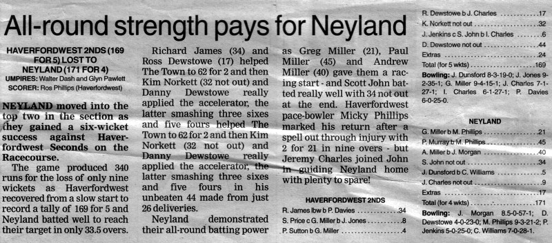 Western Telegraph Match Report, 23rd June 2004.