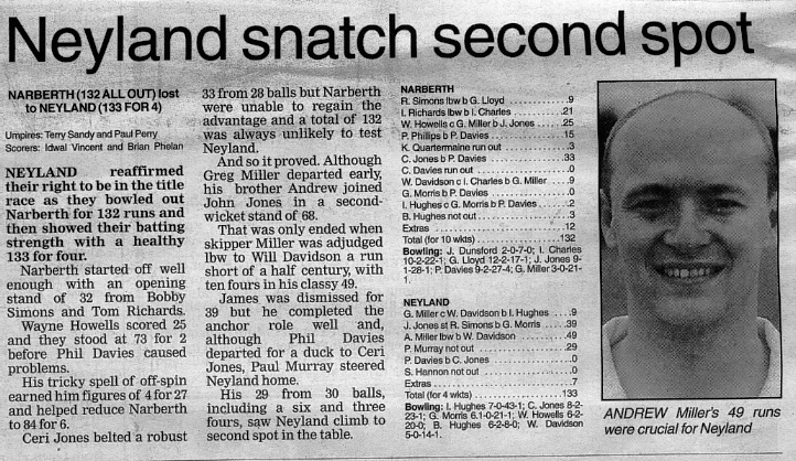 Western Telegraph Match Report, 8th June 2005.