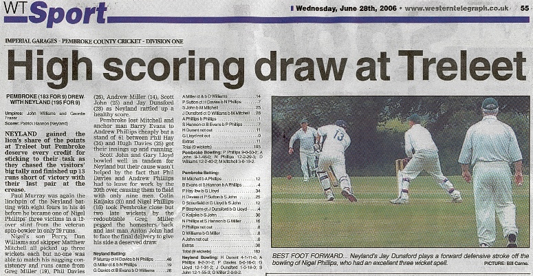 Western Telegraph Match Report, July 2006.