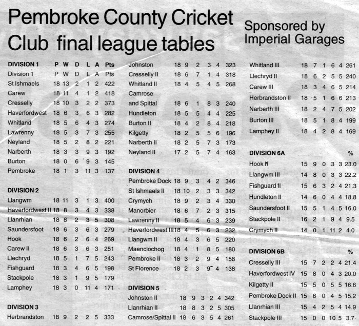 Final league tables for 2007 following Neyland's win over Burton.