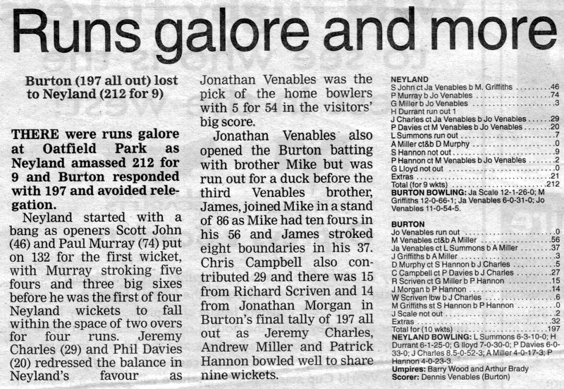 Western Telegraph Match Report, 29th August 2007.