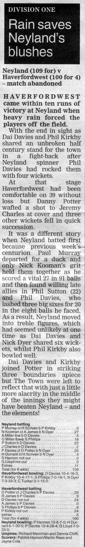 Neyland vs Haverfordwest. League, Saturday 17th May 2008. Umpires: .