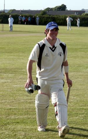 Lee Summons leaves the arena after his swashbuckling innings which took the game away from Herbrandston.
