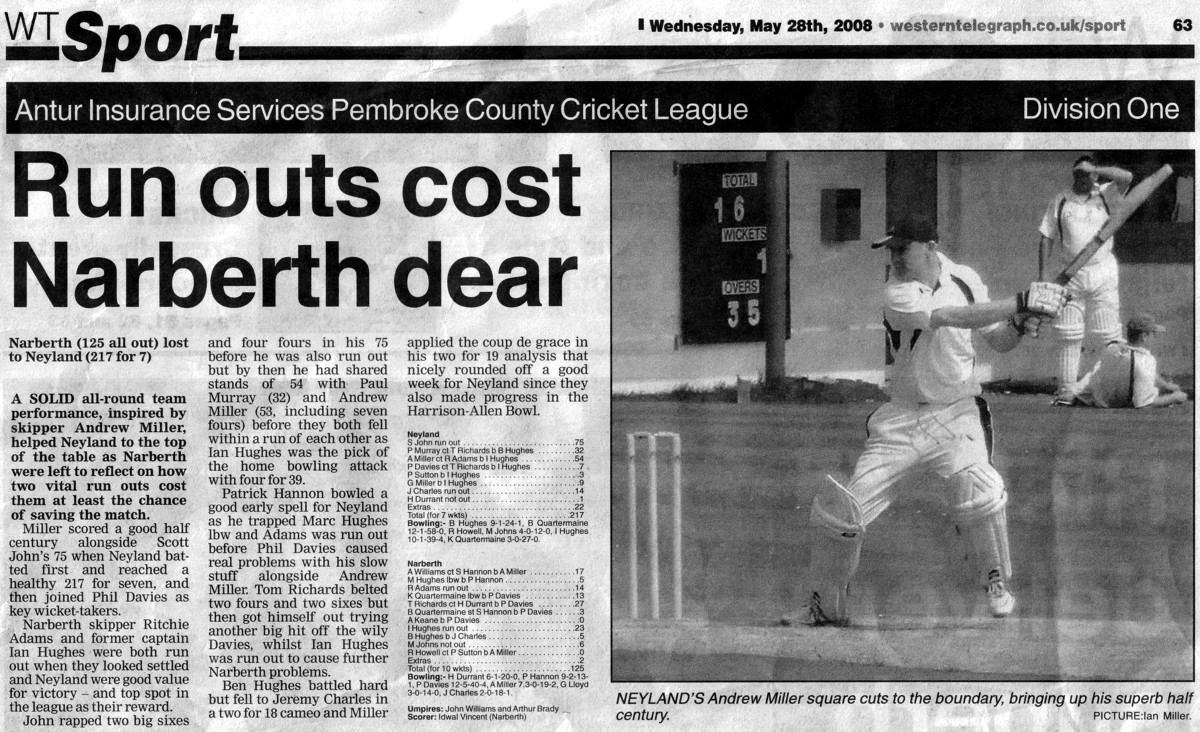 Narberth vs Neyland. League, Saturday 24th May 2008. Umpires: John Williams & Arthur Brady.