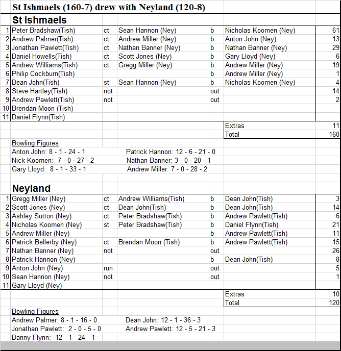 League table following Neyland's losing draw against StIshmaels: