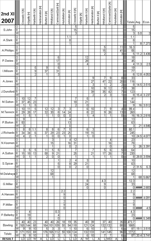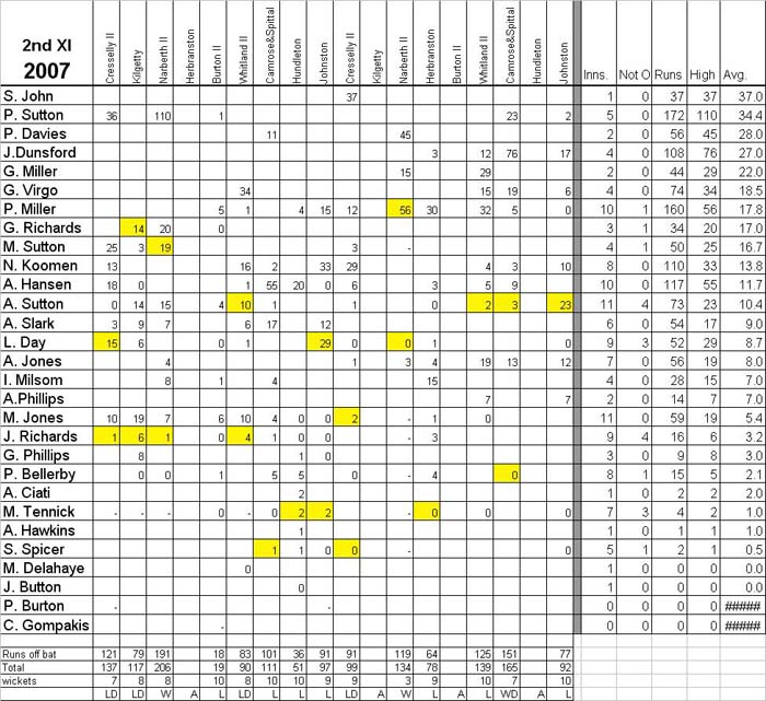 Neyland Cricket Club 2nd XI Averages, 2007.