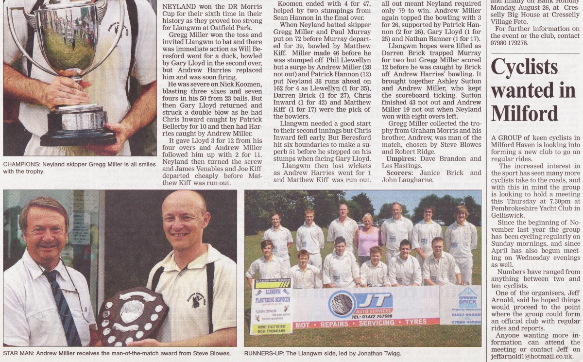 Back row, left to right: John Laugharne (scorer), Gary Lloyd, Paul Miller, Nathan Banner, Patrick Bellerby, Paul Murray, Anton John (injured)