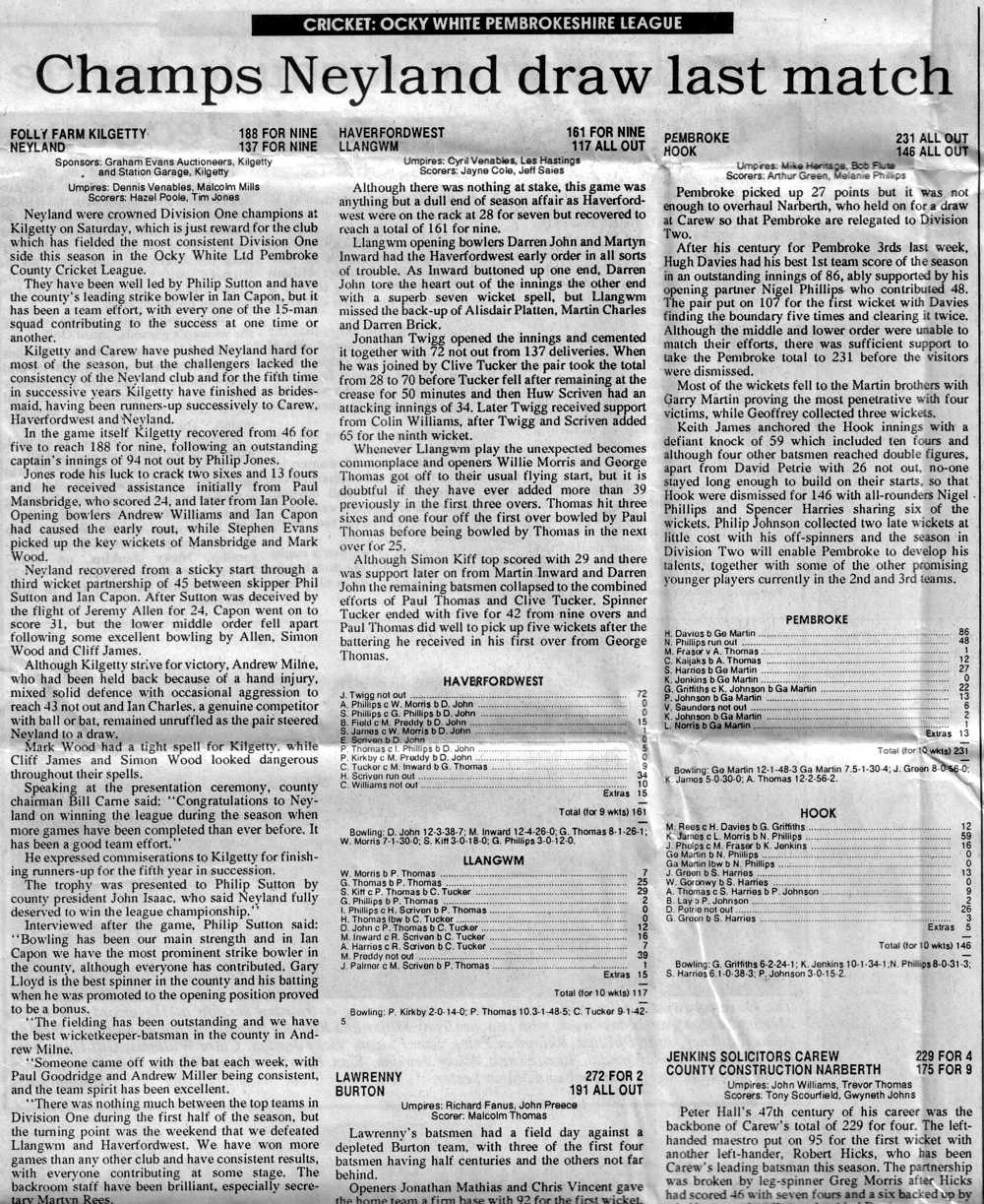 End of season league tables: