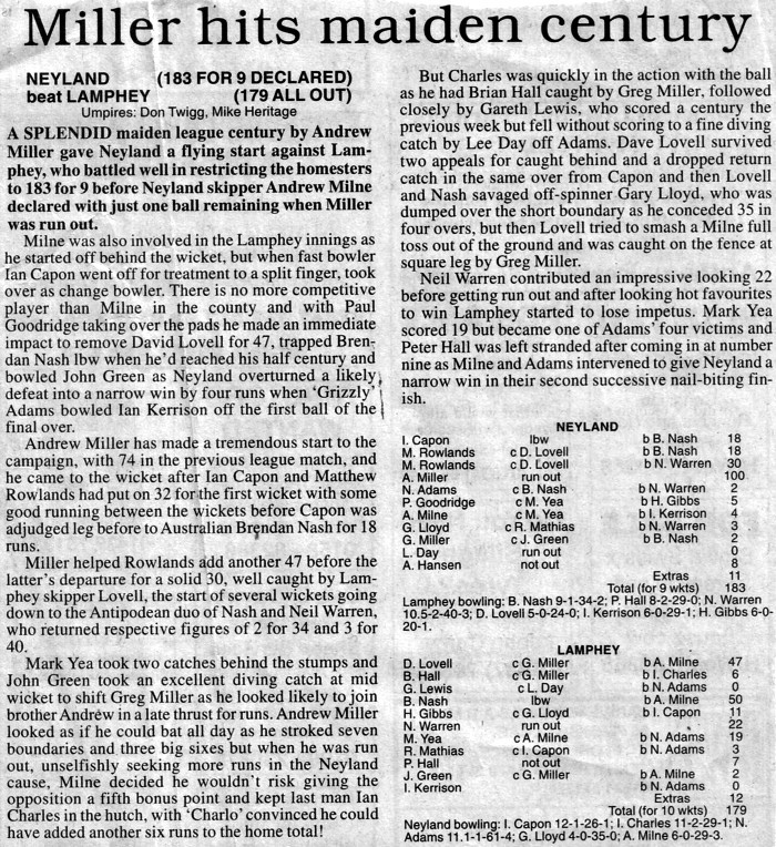 Despite this narrow loss, Lamphey went on to win the Pembroke County First Division in 1998.