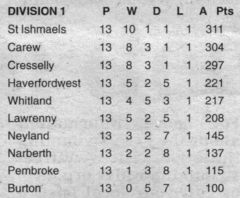 leading the first division, and fresh from their Harrison Allen semi-final win over Cresselly. Jonathan Pawlett