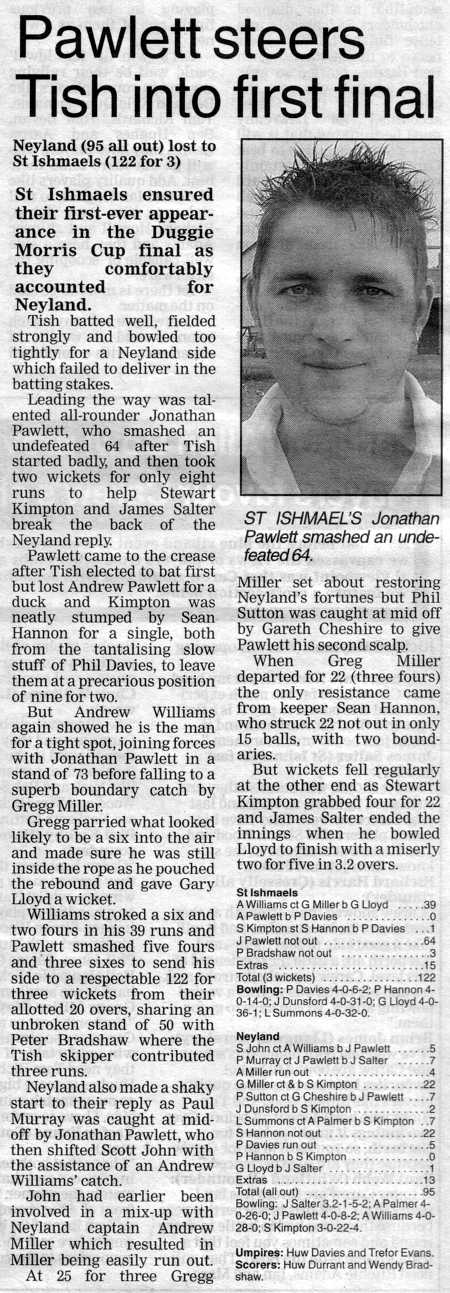 Western Telegraph Match Report, Wednesday 30th July 2008