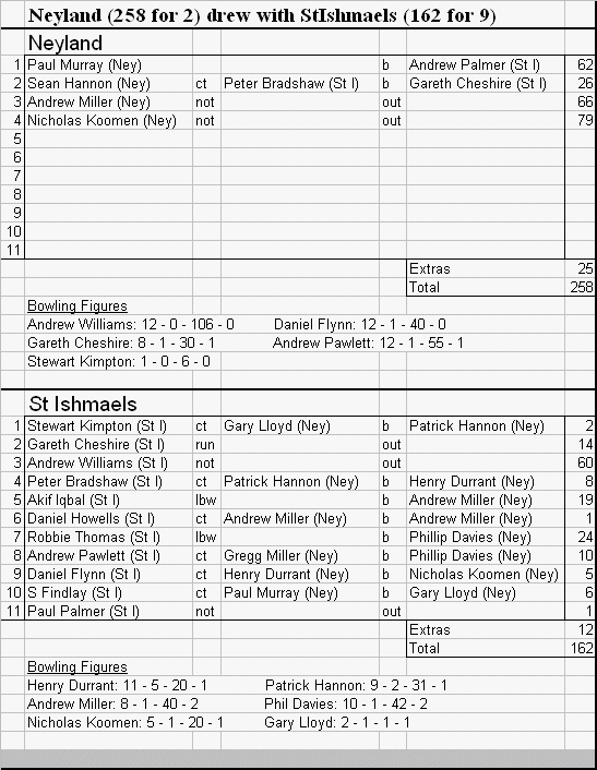 about the StIshmaels bowling with relish. Sean Hannon supported Murray to such good effect that by only the 19th over Neyland had raced to
