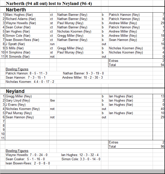 League table following Neyland's win over Narberth: