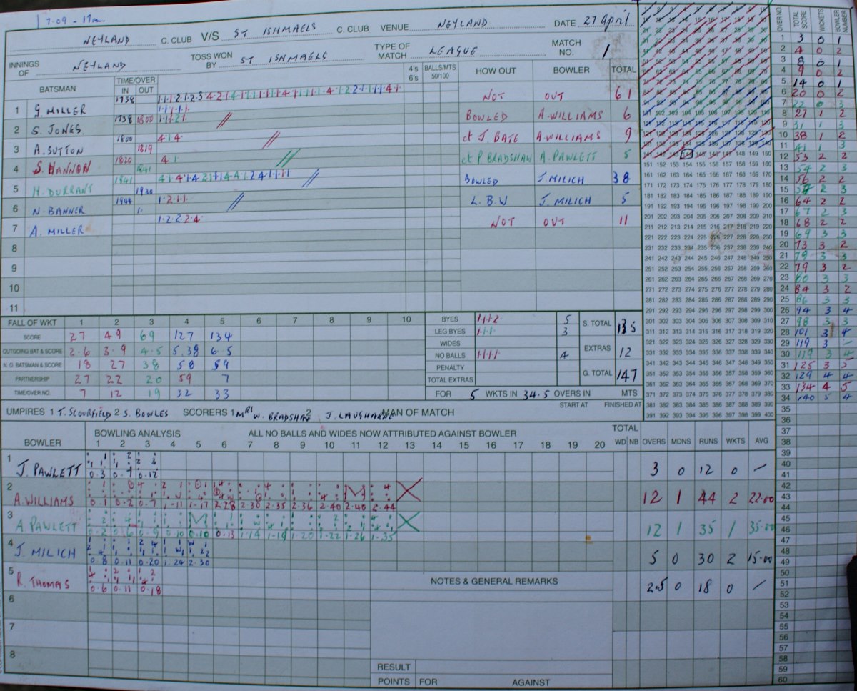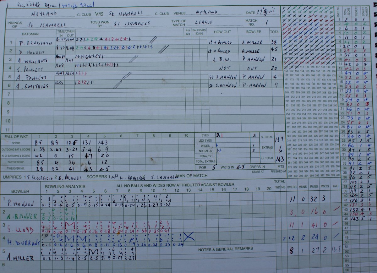StIshmaels had reached a creditable 41 for 0. Henry Durrant and Gary Lloyd slowed the scoring rate a little, but after 25 overs StIshmaels were still well placed on 81 without loss.